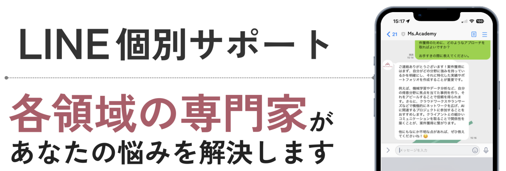 専門家がLINE個別サポートしてくれるスクールなら、安心して学習できスキル習得しやすくなります。