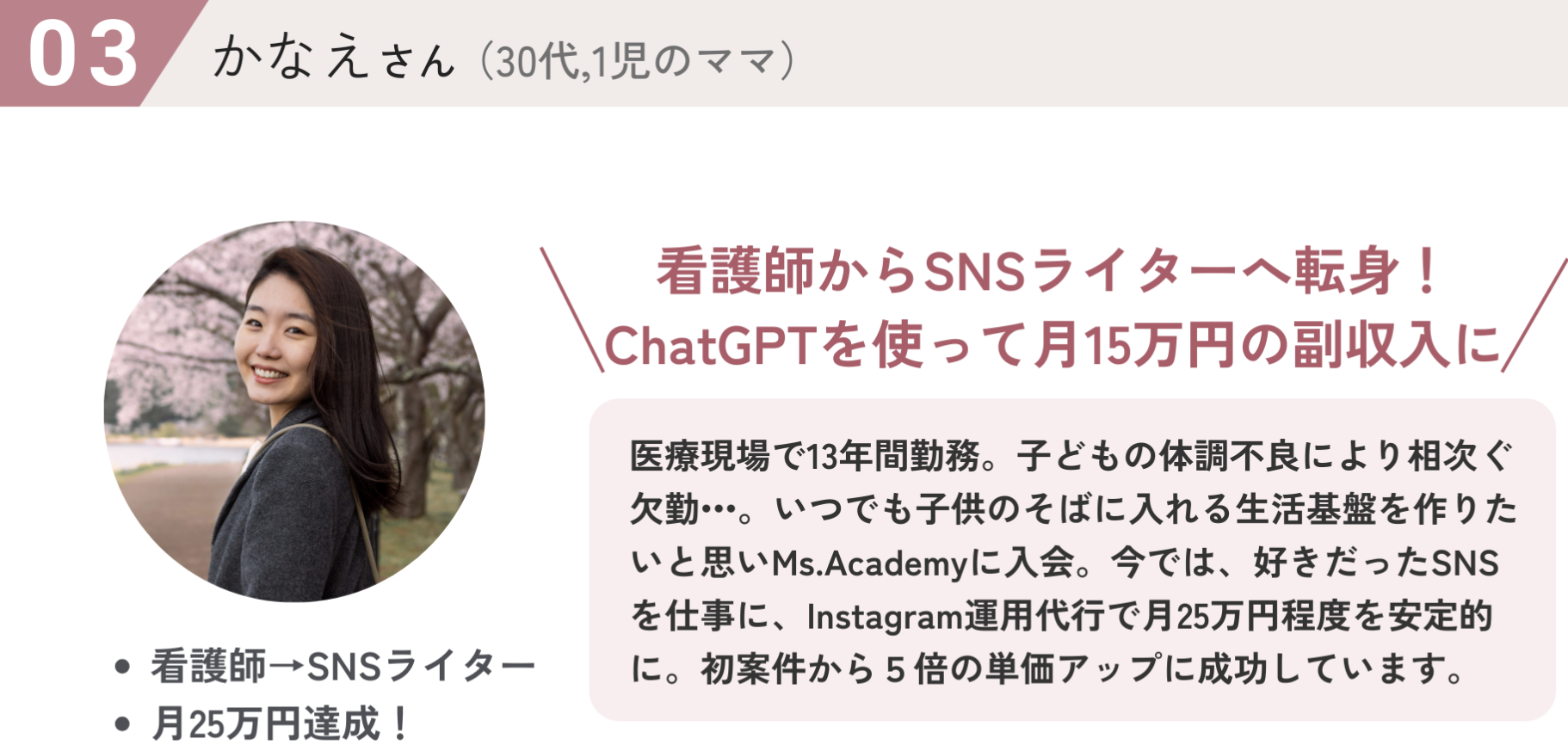 まずは第一線で活躍するプロから学び、自分らしい働き方や収入アップを目指しましょう!